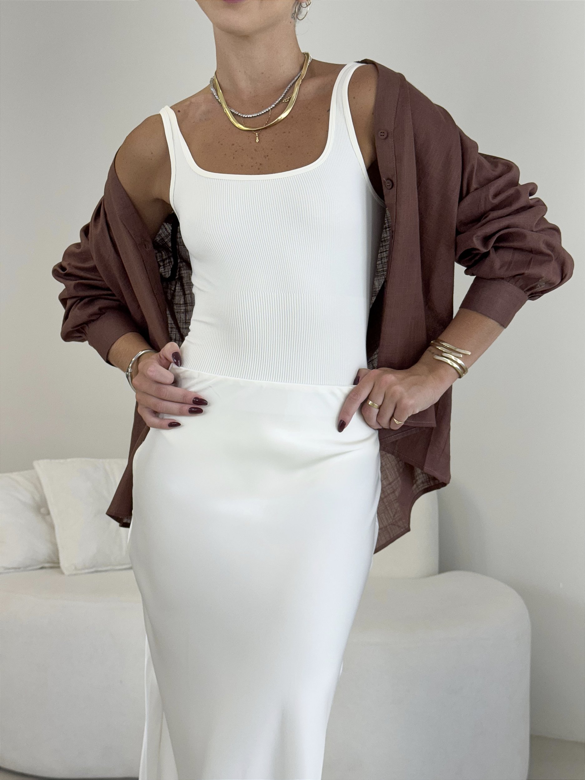 O decote quadrado traz um visual moderno e feminino, valorizando o colo e facilitando combinações tanto para looks do dia a dia quanto para produções mais elegantes. Ideal para usar com saias, calças de alfaiataria, jeans ou peças em tricot.